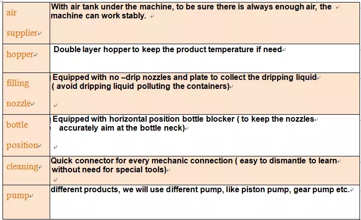 Esta máquina está hecha especialmente para todo tipo de viscosidad / líquido en la industria alimentaria, la industria química y las comodidades, como aceite de motor, aceite de motor, ensalada, gel para lavado de manos, aceite de coco, salsa de soja, sésamo, champú, jabón líquido, aceite de motor. , aceite de freno, aceite de cocina, salsa de tomate, bebida, aceite esencial, aceite vegetal, miel, salsa de pimienta, mantequilla de maní, yogur, jugo, bebida, etc. Toda la parte en contacto con el líquido / salsa es de acero inoxidable de alta calidad. adopta una bomba de pistón para el llenado. Al ajustar la bomba de posición, puede llenar todas las botellas en una máquina de llenado, con velocidad rápida y alta precisión.