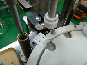 Cuando la botella vaya a esta estación, el cabezal de cierre la atornillará automáticamente.