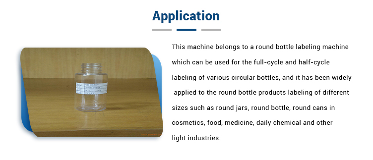 Esta máquina pertenece a una máquina de etiquetado de botellas redondas que se puede usar para el etiquetado de ciclo completo y de medio ciclo de varias botellas circulares, y se ha aplicado ampliamente al etiquetado de productos de botellas redondas de diferentes tamaños, como frascos redondos, botellas redondas , latas redondas en cosméticos, alimentos, medicina, química diaria y otras industrias ligeras. Composición del equipo: gabinete eléctrico, mecanismo de transporte, dispositivo de botella separada, dispositivo de etiqueta rodante, dispositivo de etiqueta de cepillo, motor de etiquetado 1 #, sistema de operación y sistema de control.